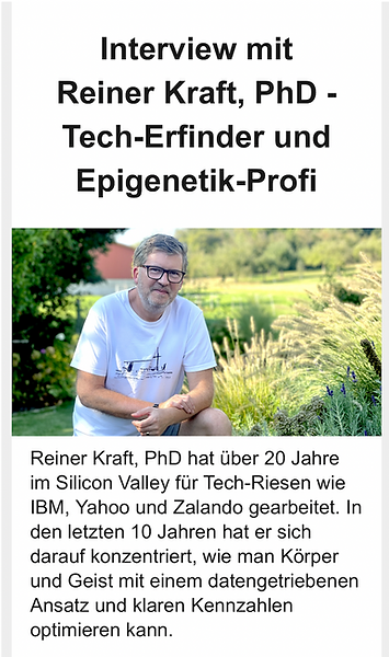 Parallel setzte Reiner seine Tech-Karriere fort, unter anderem in Berlin, auch in CTO-Rollen und im Aufbau von Start-ups. Doch der persönliche Ansatz funktionierte – messbar, reproduzierbar und stabil. Aus der eigenen Anwendung wurde die Arbeit mit Führungskräften und Entscheidern, zunächst im Bereich Mindful Leadership, später zunehmend auf biologischer und epigenetischer Ebene.